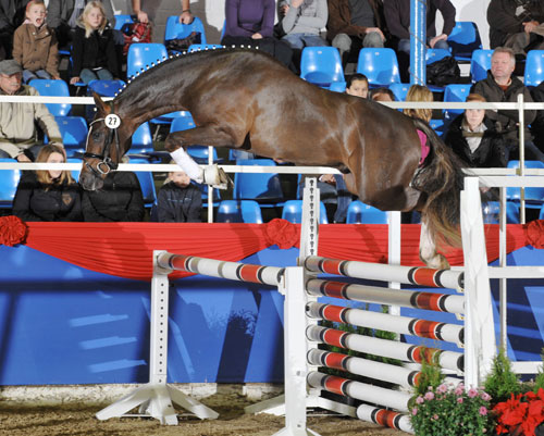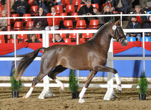 Der frische Reservesieger der Körung der Reitponyhengste in Weser-Ems. Der typvolle Hengst, der jetzt den Titel "Prämienhengst" tragen darf, bestach in Vechta mit spektakulärem Bewegungsablauf, enormer Ausstrahlung und beeindruckendem Springen.